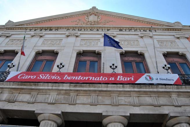 "Caro Silvio, bentornato a Bari". E' lo striscione che il sindaco di