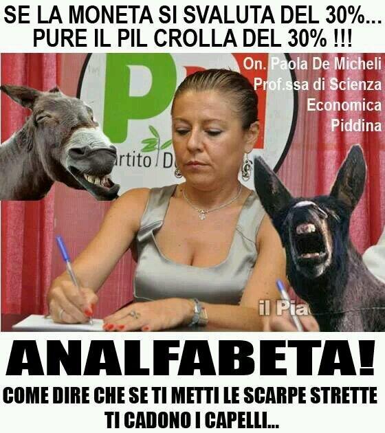 On. De Micheli-Pd:"Se la moneta si svaluta del 30%...pure il PIL crolla del 30%....! Asina?...no! Pidiessina!