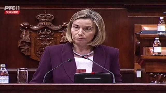 Che vi piaccia o no, voi serbi dovete entrare  nella UE,  ha intimato a nome di una UE in pieno sfacelo. Ma è tutto lavoro disinteressato, fatto in realtà  per la NATO.  Dai media:  “La nostra Unione restera’ incompleta fino a quando la Serbia e gli altri Paesi della regione ne resteranno fuori”, ha detto Mogherini in un discorso pronunciato in mattinata nel parlamento serbo.  In cui èstata malissimo accolta da (dice l’ANSA) “i ultranazionalisti e antieuropeisti del partito Srs di Vojislav Seselj, rimasti sempre in piedi,  che hanno mostrato cartelli con su scritto in serbo e in inglese “La Serbia non crede a Bruxelles”…Durante tutto l’intervento, Mogherini è stata contestata al grido di “Srbija, Rusija, ne treba nam Unija“, cioè “Serbia, Russia, non ci serve l’Unione europea“.
