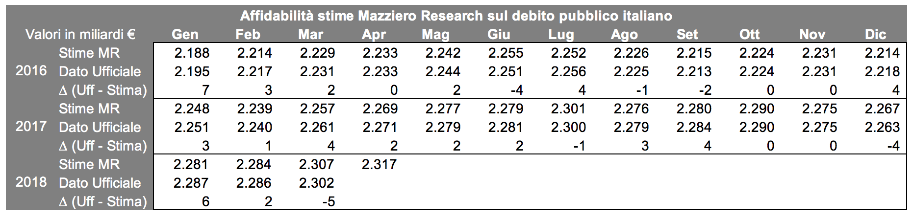 Le stime Mazziero Research: